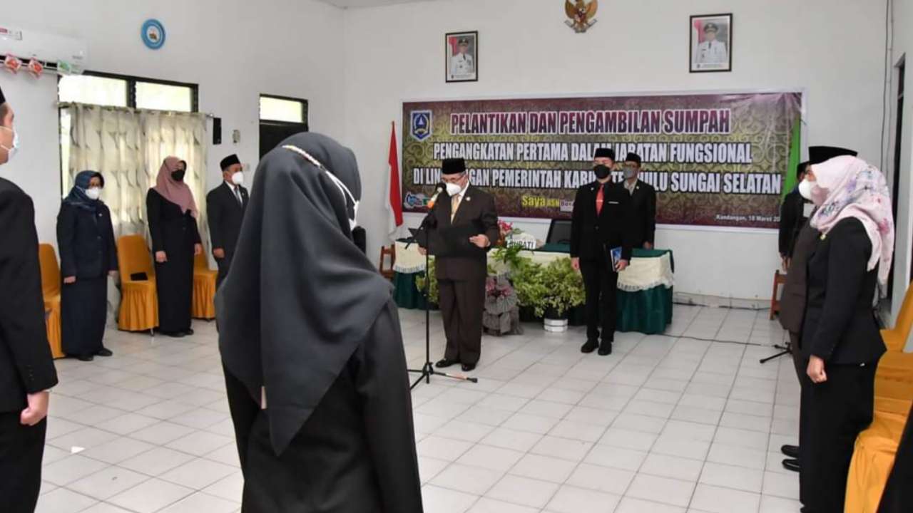 KANDANGAN, narasipublik.net – Sebanyak 78 Aparatur Sipil Negara (ASN) pejabat fungsional di Kabupaten Hulu Sungai Selatan (HSS) dilantik dan diambil sumpahnya oleh Bupati Achmad Fikry, Jumat (18/03/2022).