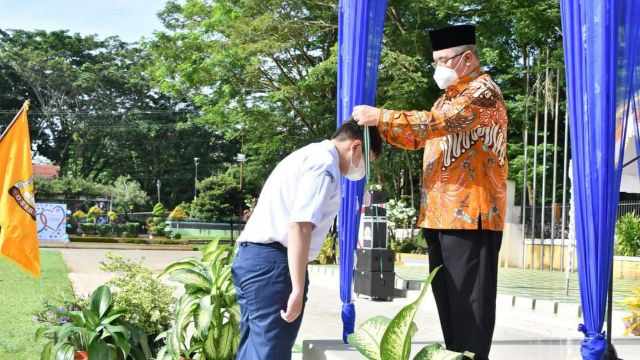 Pengukuhan yang dilaksanakan di Lapangan Lambung Mangkurat, Kota Kandangan merupakan bentuk apresiasi untuk peserta didik yang telah lulus SMP dimasa pandemi Covid-19.