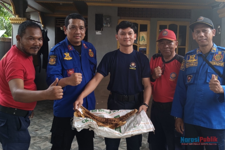 AMUNTAI, narasipublik.net – Anggota Satuan Polisi Pamong Praja (Satpol PP) dan Pemadam Kebakaran (Damkar) Kabupaten Hulu Sungai Utara (HSU) berhasil mengevakuasi sarang lebah madu, Rabu (15/01/2025).