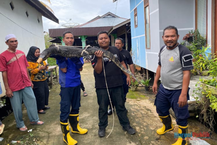 AMUNTAI, narasipublik.net Tim Animal Rescue Damkar Kabupaten Hulu Sungai Utara (HSU) berhasil mengevakuasi seekor biawak berukuran besar yang ada di pemukiman warga, Jumat (24/01/2025) kemarin.