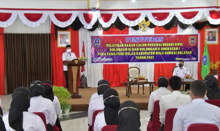 KANDANGAN, narasipublik.net – Kegiatan Pendidikan dan Latihan Dasar (Diklatsar) Calon Pegawai Negeri Sipil (CPNS) Hulu Sungai Selatan (HSS) golongan III dan II angkatan I pola fasilitasi kelas akhirnya resmi ditutup.