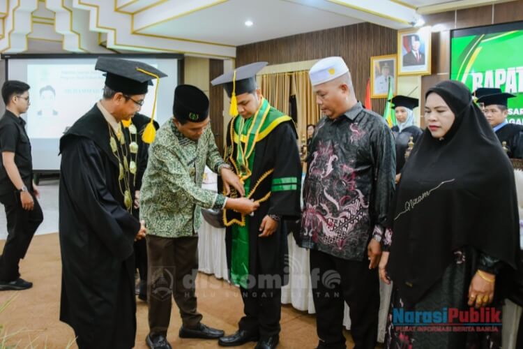 KANDANGAN, narasipublik.net Bupati Hulu Sungai Selatan (HSS), H. Syafrudin Noor menghadiri acara Wisuda ke-21 Institut Agama Islam (IAI) Darul Ulum Kandangan, di Pendopo Bupati, Sabtu (28/06/2025).