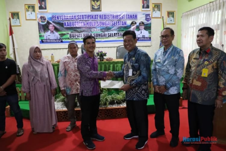 KANDANGAN, narasipublik.net – Pemerintah Kabupaten (Pemkab) Hulu Sungai Selatan (HSS) membagikan sertifikat hak tanah kepada masyarakat lewat program reformasi graria (TORA) Badan Pertanahan Nasional (BPN) setempat.