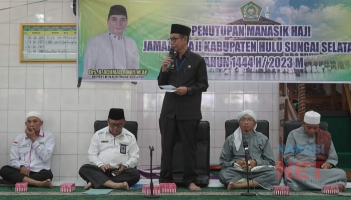KANDANGAN, narasipublik.net – Sekretaris Daerah (Sekda) Hulu Sungai Selatan (HSS) Muhammad Noor resmi menutup kegiatan bimbingan manasik haji tingkat kabupaten, di Masjid Al Minah Kandangan, Senin (22/05/2023).