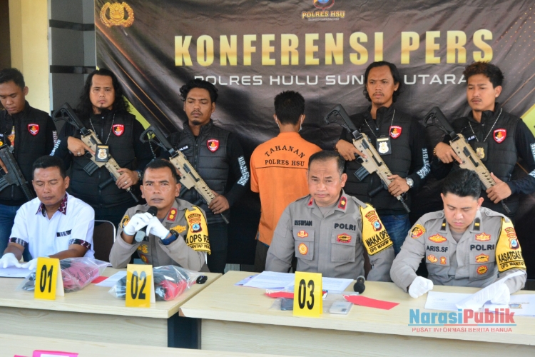 Kapolres HSU AKBP Meilki Bharata saat memimpin pers rilis ungkap kasus rudapaksa anak dibawah umur.