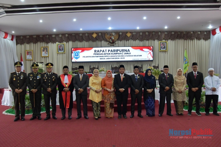 KANDANGAN, narasipublik.net – Pimpinan definitif Dewan Perwakilan Rakyat Daerah (DPRD) Kabupaten Hulu Sungai Selatan (HSS) periode 2024-2029 resmi dilantik, Senin (30/09/2024).