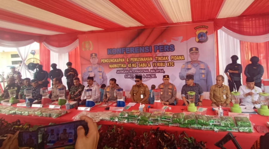 “Ada kurang lebih sebanyak 45 Kilogram sabu-sabu dan 11.792 butir ekstasi yang kita musnahkan hari ini,” ucap Kapolda Kalsel.