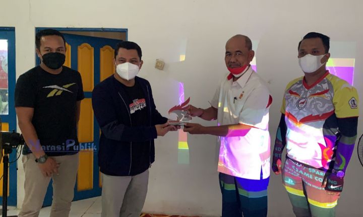 Pengurus ESI HSS memberikan plakat kenang-kenangan kepada Pengurus ESI Batola, Minggu (17/10/2021).