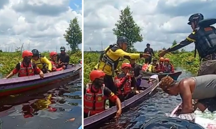 Baru Tiba, Tim Relawan Tapin dan HSS Langsung Sisir Wilayah Terisolir Banjir di Kalteng