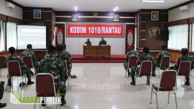 Dalam pertemuan yang digelar sesuai protokol kesehatan di Aula Parikesit Makodim 1010/Rantau, Pabandya Wanwil, Letkol Inf Baharuddin mengatakan bahwa kunjungan kali ini merupakan komando atas yang dilakukan secara rutin.