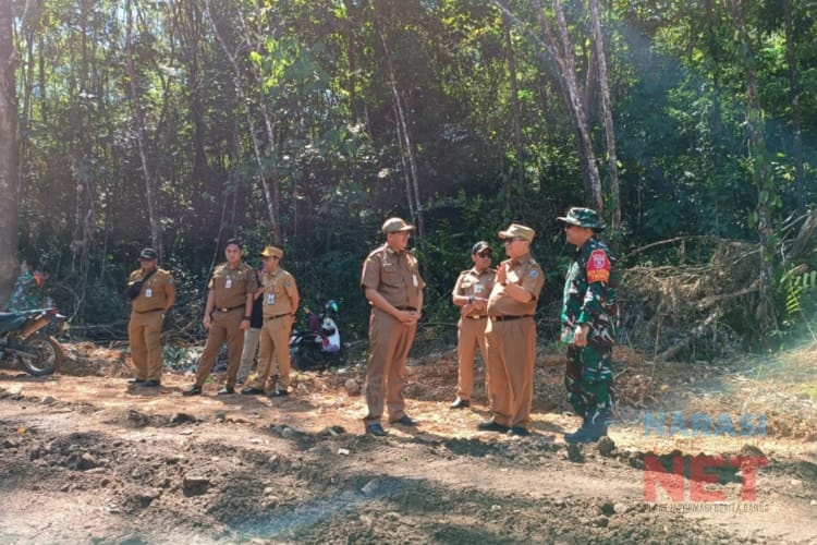 Bupati HSS, Achmad Fikry bersama Dandim 1003/HSS Letkol Inf Nurliwedie Nurdin Kanan meninjau sasaran fisik utama pembukaan akses jalan pada program TMMD ke 117 di Dusun Paniungan, Desa Malilingin, Kecamatan Padang Batung.