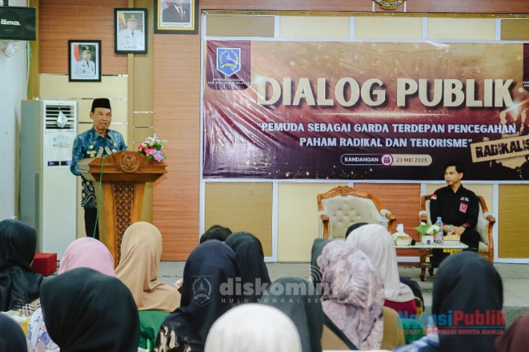 KANDANGAN, narasipublik.net – Wakil Bupati (Wabup) Hulu Sungai Selatan (HSS), Suriani, membuka Dialog Publik bertema “Pemuda sebagai Garda Terdepan Pencegahan Paham Radikal dan Terorisme” di Pendopo Wakil Bupati, Jumat (23/05/2025).